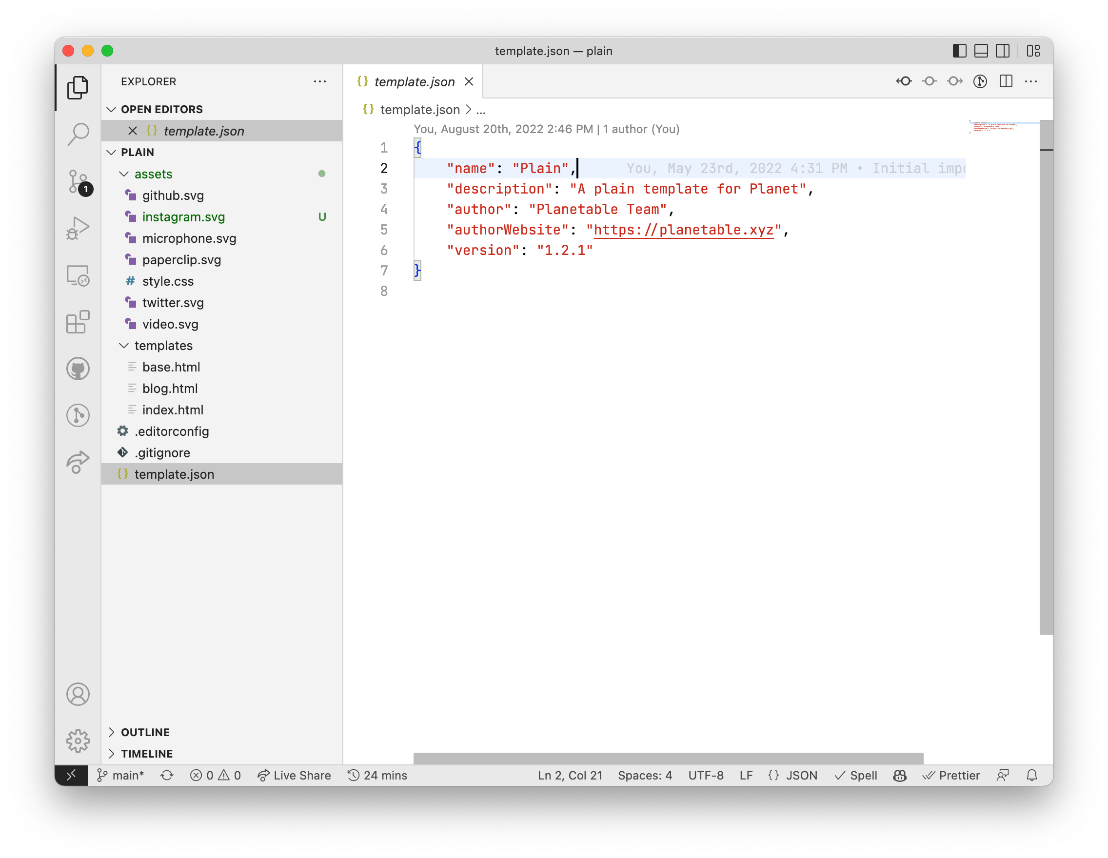 ~/Library/Containers/xyz.planetable.Planet/Data/Documents/Planet/Templates - 复制其中的 Plain 模版的目录到一个新的目录